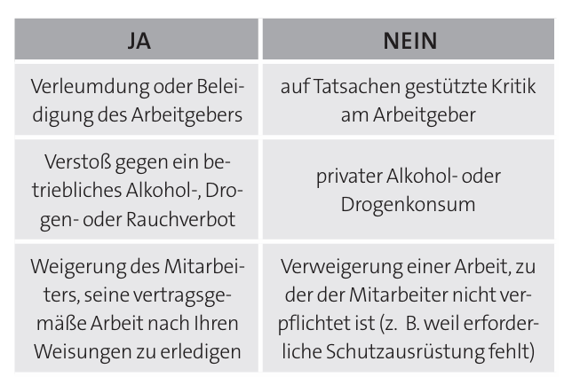 - Der Mitarbeiter genießt keinen Kündigungsschutz, z. B. im Kleinbetrieb mit höchstens zehn Mitarbeitern oder während der ersten sechs Beschäftigungsmonate.