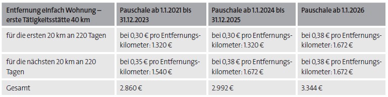 Beispiel: Diese Pauschale fällt bei einem Arbeitsweg von 40 km einfach an