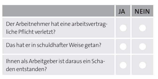- Sie übergeben dem Arbeitnehmer zunächst eine Schadensaufstellung und verlangen von ihm Bezahlung.