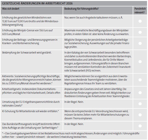 Als Führungskraft sollten Sie zumindest in Grundzügen über aktuelle Entwicklungen in der arbeitsrechtlichen Gesetzgebung informiert sein. Denn oft werden sich Ihre Teammitglieder mit Fragen oder Sorgen dazu zunächst an Sie wenden. Und außerdem sind Sie ja auch Arbeitnehmer bzw. Arbeitnehmerin. Die Änderungen betreffen Sie also auch ganz persönlich.