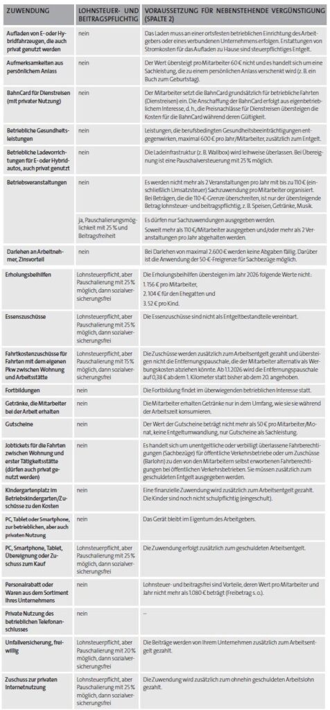 Übersicht: Die wichtigsten lohnsteuer- und beitragsfreien Entgeltbestandteile 2026 von A bis Z
